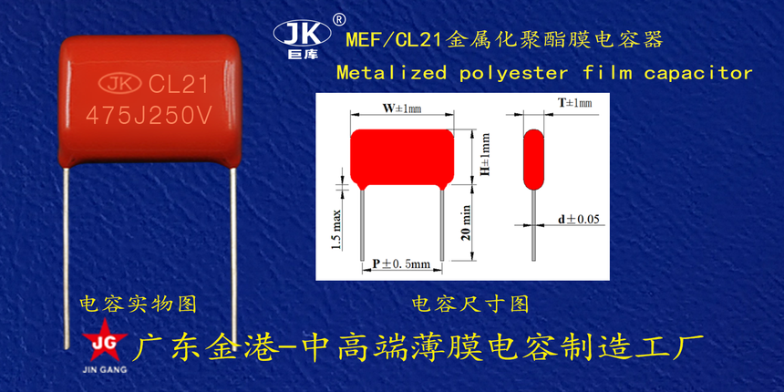 産品品牌(pai) :JK巨庫金港JINGANG 産品材(cai)質: 金屬化聚丙烯(xi)高溫薄膜 産品性(xìng)能: 采用高溫金屬(shu)化聚丙烯薄膜 耐(nai)壓高,損耗低,内部(bu)溫升小,使用錫合(hé)金噴金, 具備良好(hǎo)的高脈沖電流能(néng)力,充放電性能優(yōu)異。 産品作用: 廣泛(fàn)應用于各種隔直(zhi)流濾波,低脈沖電(diàn)路,旁路和耦合等(deng)場合。 定制加工 :可(ke)按客戶需求定制(zhi),滿足客戶不同需(xū)求。