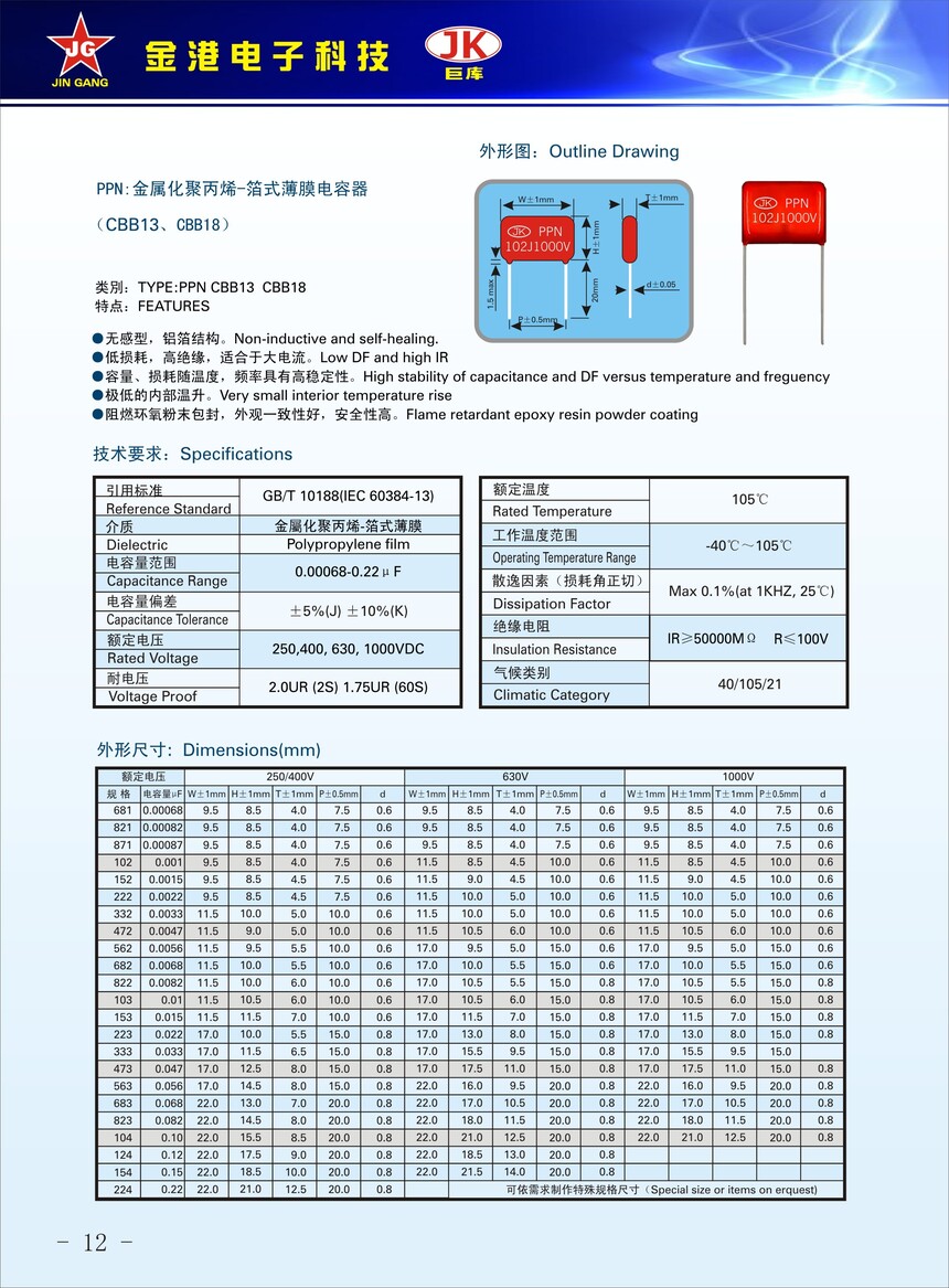 産(chan)品品牌 :JK巨庫(ku)金港JINGANG 産品材(cái)質: 鋁箔聚丙(bing)烯膜電容器(qi) 産品性能: 采(cai)用高溫聚丙(bing)烯膜,鋁箔電(dian)極耐壓高, 損(sun)耗低,i高頻條(tiao)件下内部溫(wēn)升小錫合金(jīn)噴金, 具備良(liang)好的耐電流(liu)能力。充放電(diàn)性能優異。 産(chǎn)品作用: 廣泛(fàn)應用于各種(zhong)直流,低脈沖(chòng)電路,等場合(hé)。 定制加工 :可(kě)按客戶需求(qiu)定制,滿足客(kè)戶不同需求(qiu)。