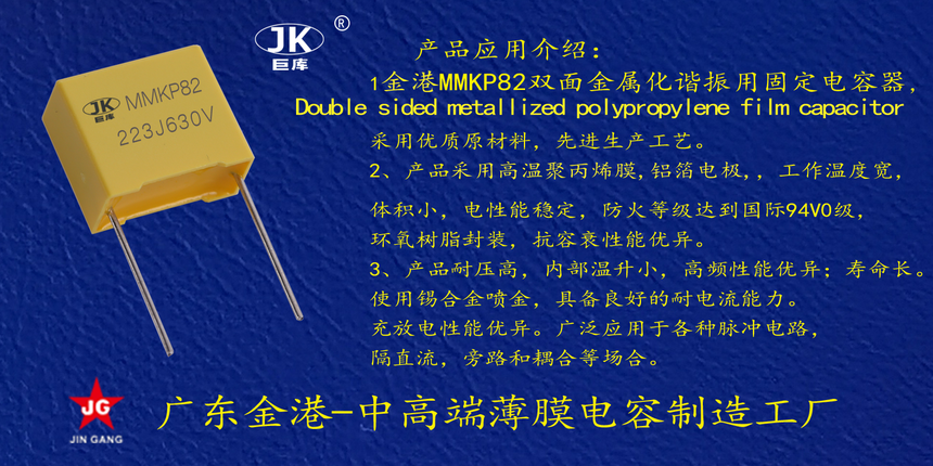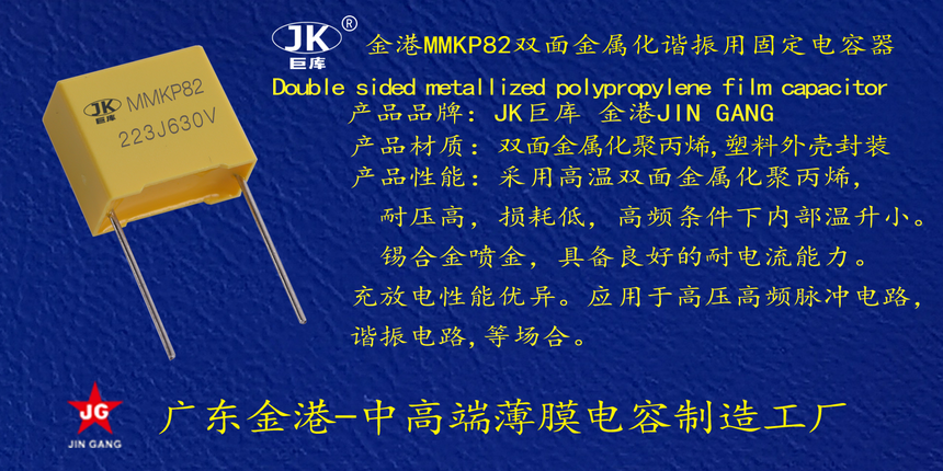 産(chǎn)品品牌(pái) :JK巨庫金(jin)港JINGANG 産品(pin)材質: 雙(shuang)面金屬(shu)化聚丙(bing)烯,塑料(liao)外殼封(fēng)裝 産品(pǐn)性能: 采(cǎi)用高溫(wen)雙面化(hua)聚丙烯(xi),耐壓高(gao), 損耗低(dī),高頻條(tiao)件下内(nei)部溫升(sheng)小。錫合(hé)金噴金(jin), 具備良(liang)好的耐(nài)電流能(néng)力。充放(fang)電性能(neng)優異。 産(chan)品作用(yòng): 應用于(yu)高壓高(gāo)頻脈沖(chong)電路,諧(xié)振電路(lù),等場合(hé)。